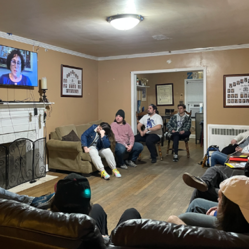 For the last several years, ZBT has partnered with Hillels of Memphis to mark International Holocaust Remembrance day by bringing meaningful educational programing into the frat house. This year Joseph Duncan, Jr, the chapter’s Programming Director and a second-semester sophomore, tapped Hillels of Memphis Director Sophie Bloch to reflect on antisemitism and curate video content to screen for a group of fifteen ZBT members and their friends in late January.